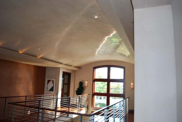 Exterior work consisted of lath, scratch, and brown coats, mesh and base crack suppression system, and architectural foam finished with Vero Antiqua Venetian plaster. Venetian plaster also applied to interior of the home. Approximately 15,000 sq. ft. of Venetian plaster applied during project.